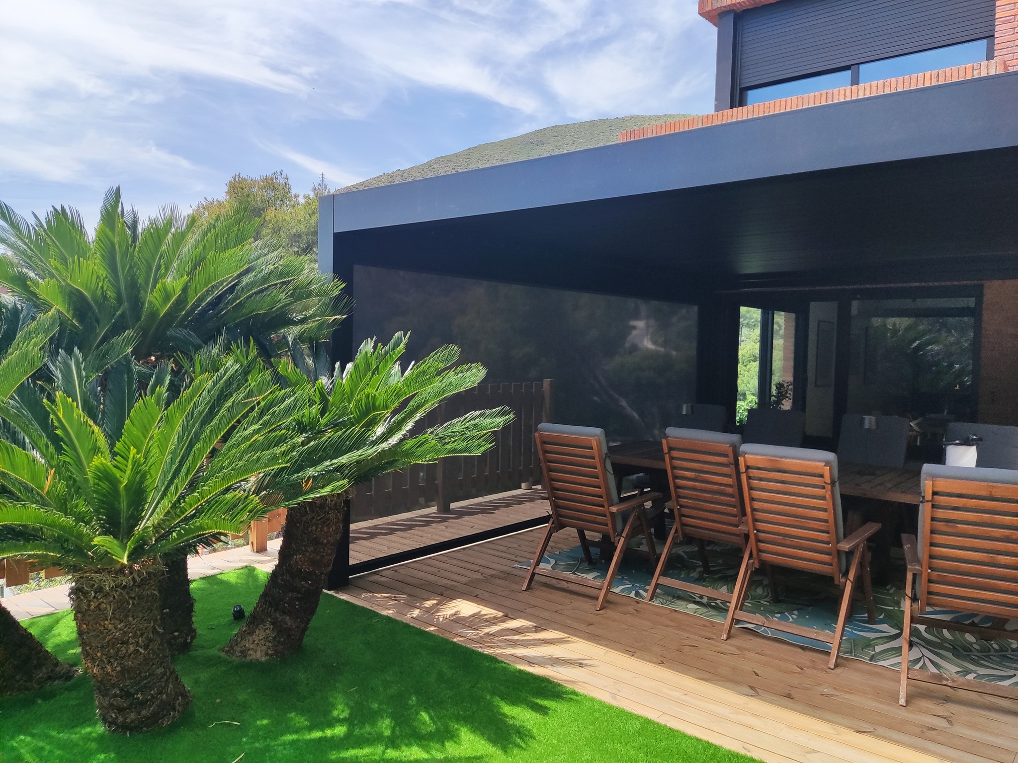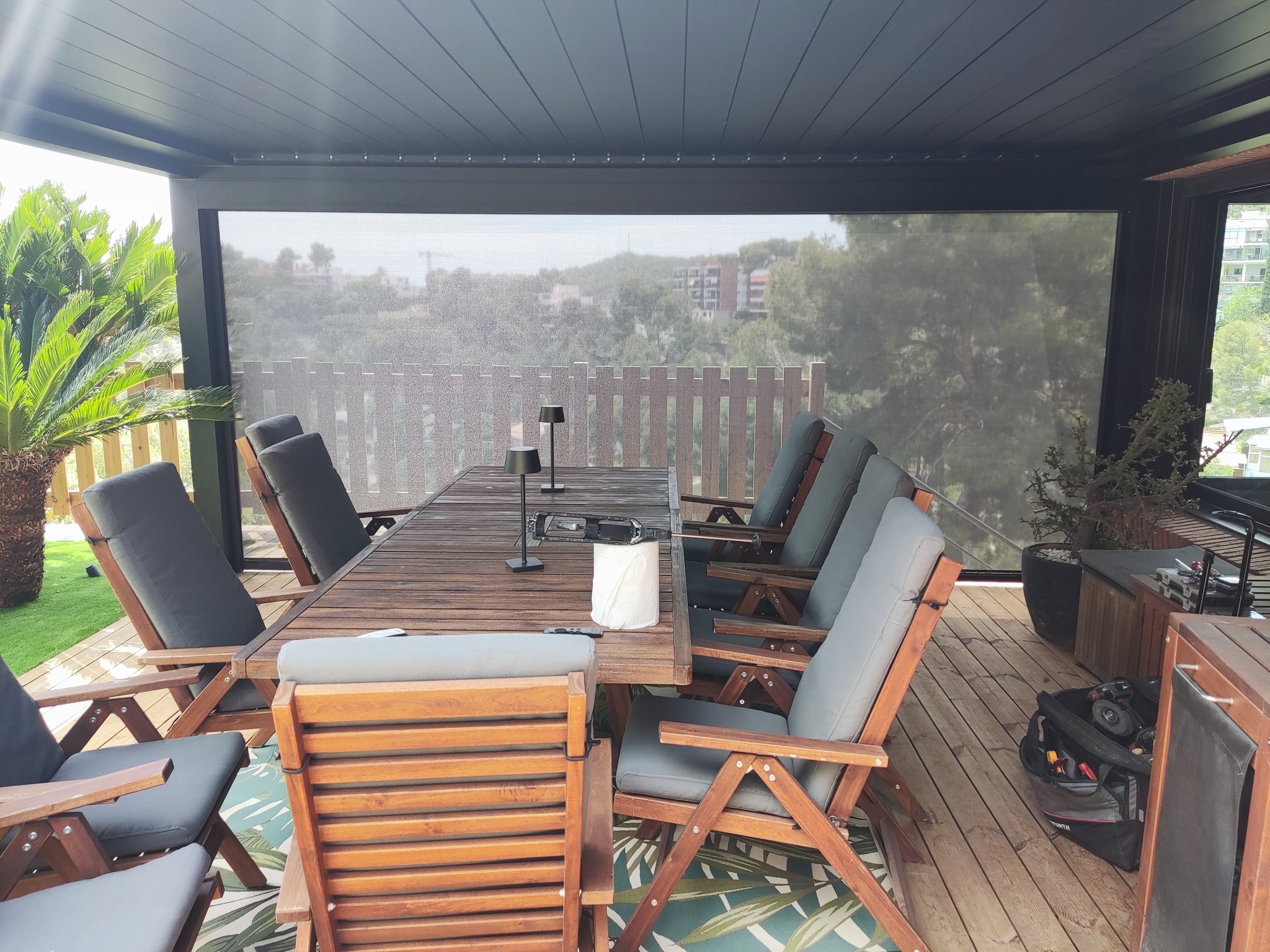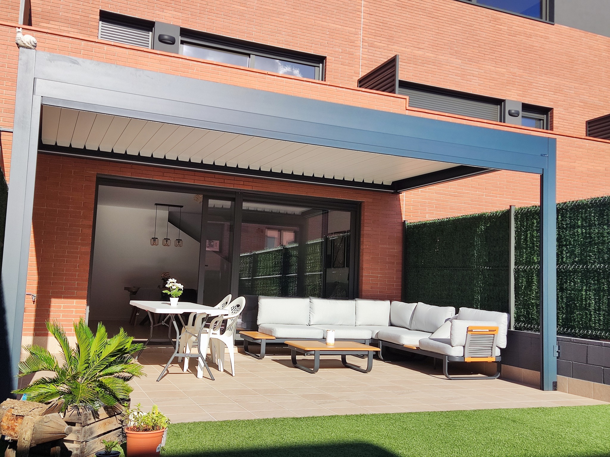 Nuestra oferta incluye soluciones innovadoras como pérgolas bioclimáticas, que no solo embellecen tu espacio exterior, sino que también mejoran su funcionalidad y confort. Estas estructuras están diseñadas para adaptarse a diferentes climas y necesidades, permitiéndote disfrutar de tu exterior durante todo el año.